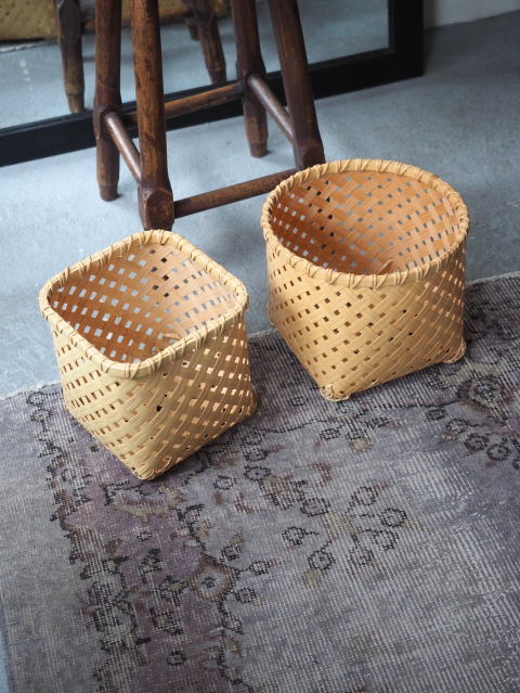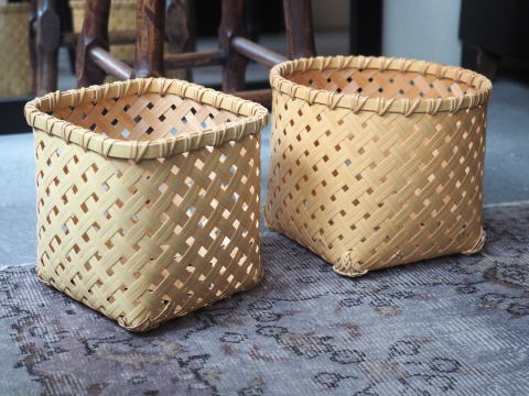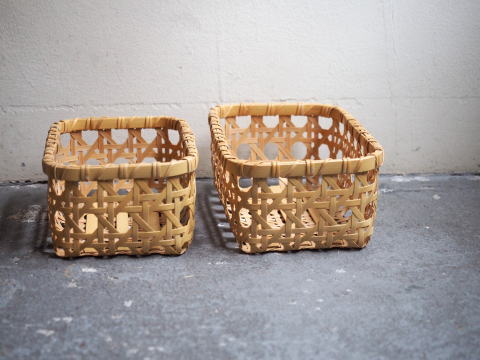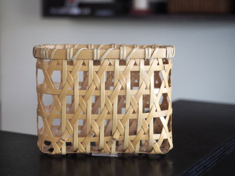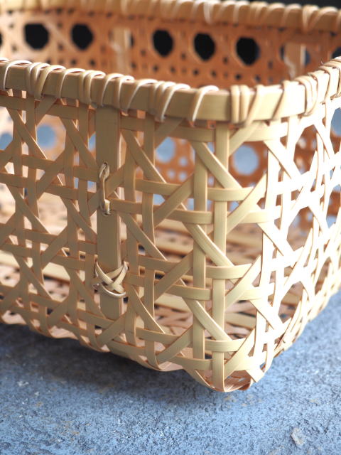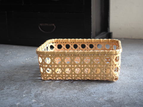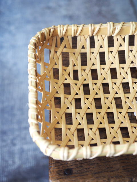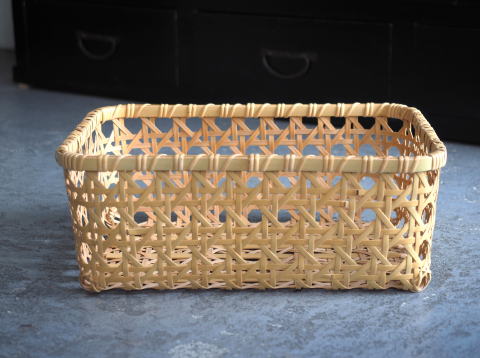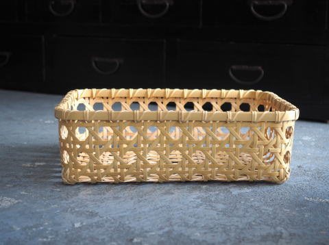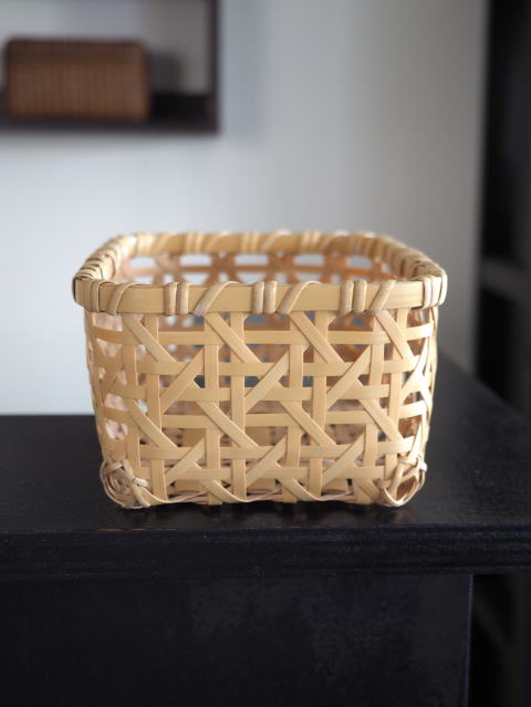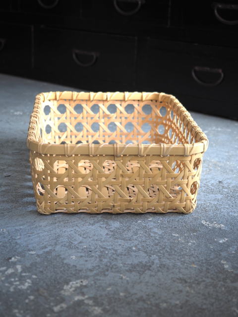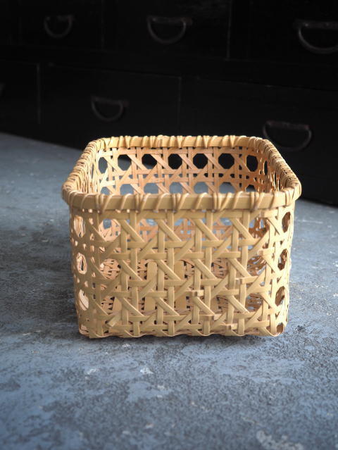 (9)整理篭 角型 2本寄四ツ目編み