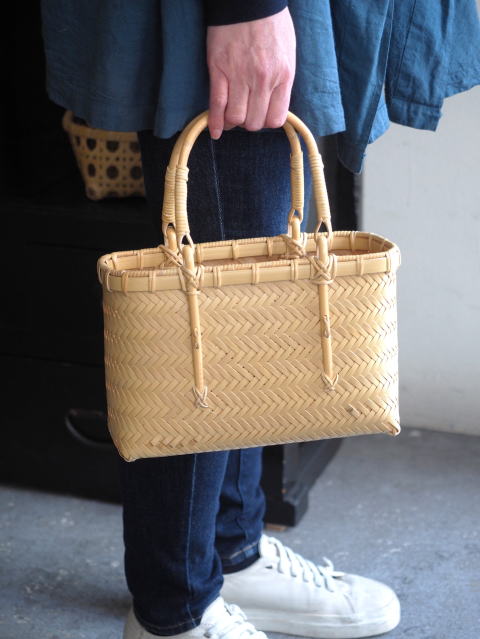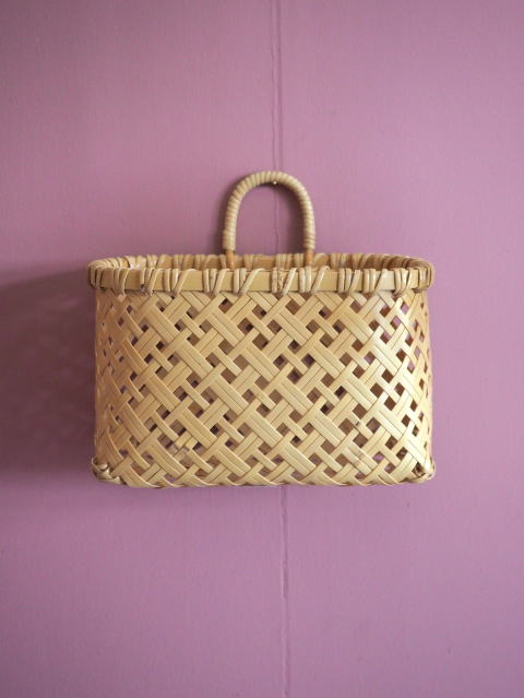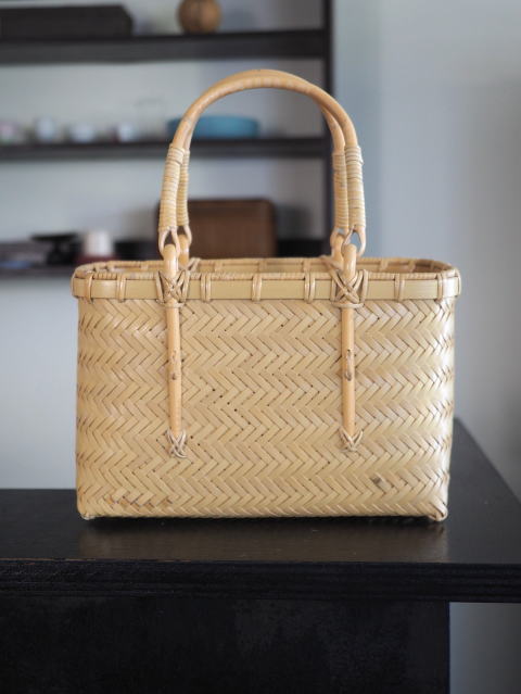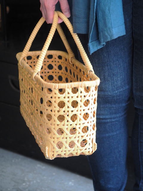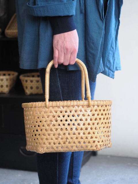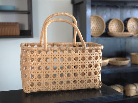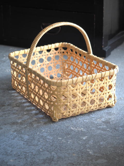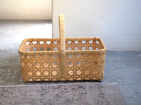 (51)手付きバスケット 長角型 八ツ目編み 2本手