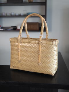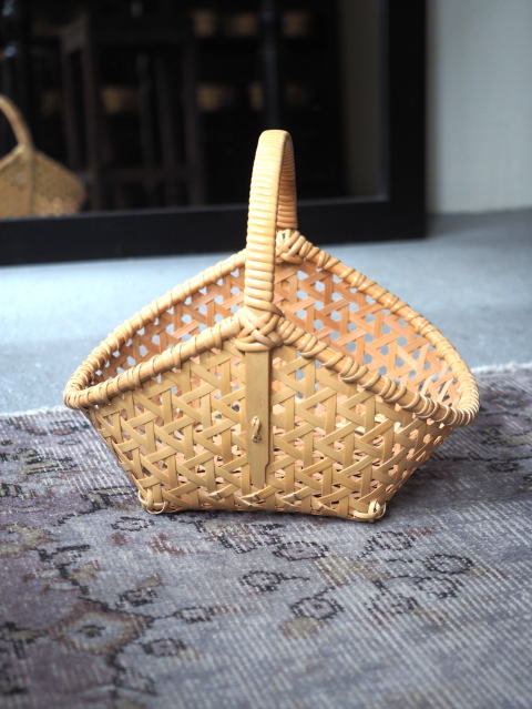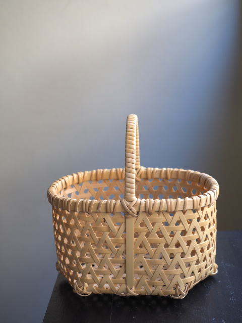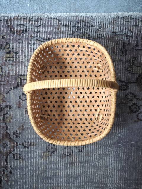 (55)手付きバスケット 舟型 亀甲編み 1本手