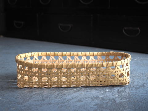 テーブルバスケット長角型 八ツ目編み