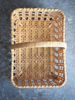 (52)手付きバスケット 長角型 網代編み 2本手