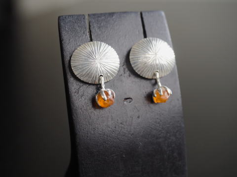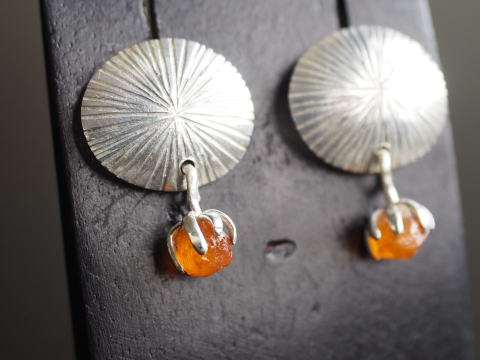 ピアス マンダリンガーネット/Garnet、Silver950/16×23mm
