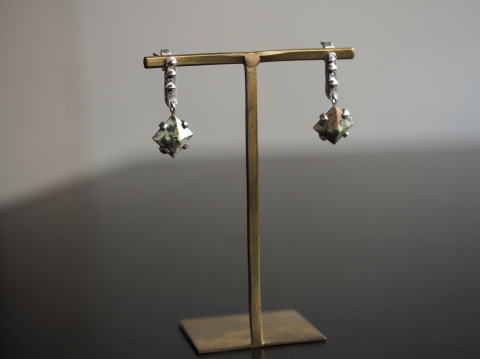ピアス エピドート/Epidote、Silver950/10×30mm
