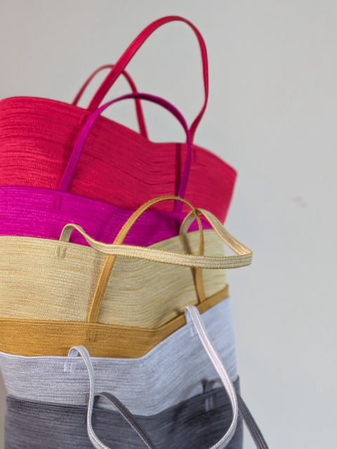 今展では春らしくカラフルなカゴバッグや
