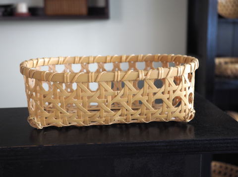 テーブルバスケット長角型 八ツ目編み