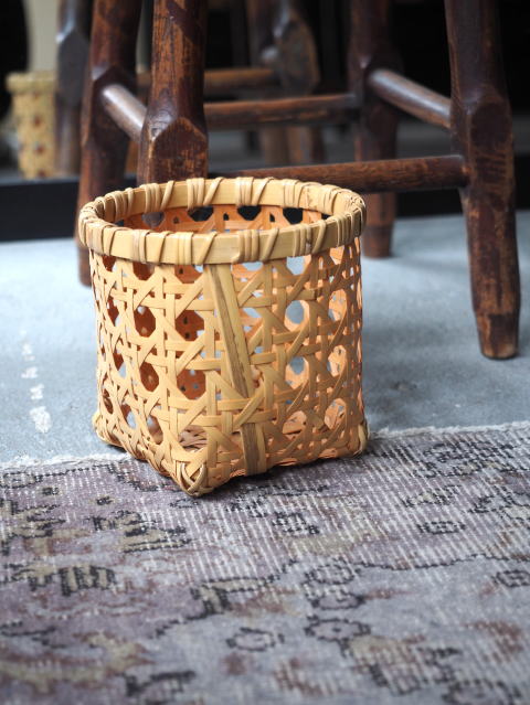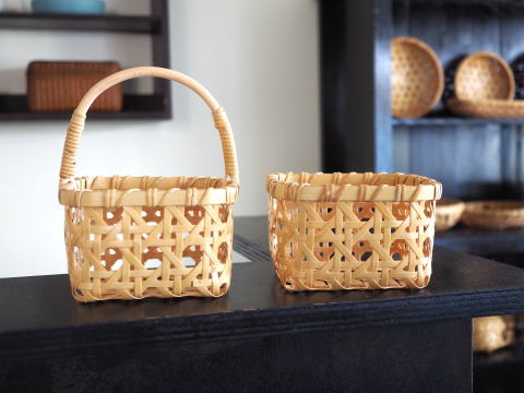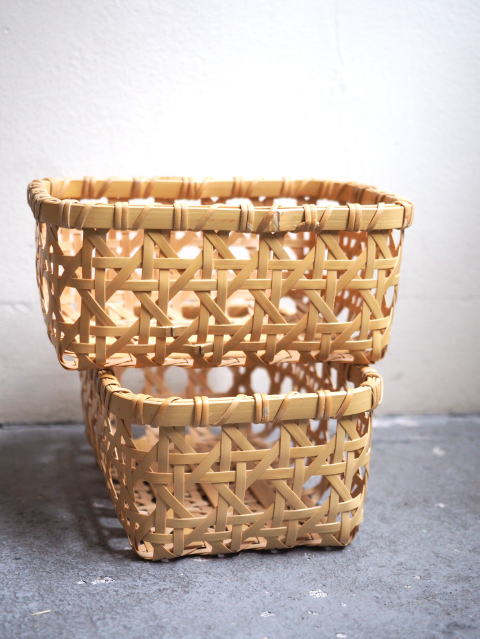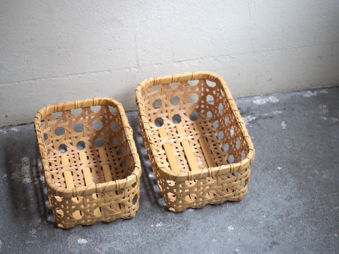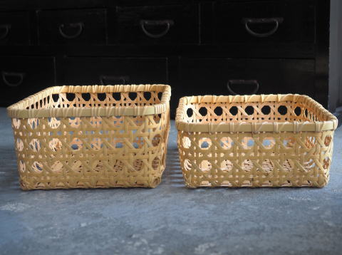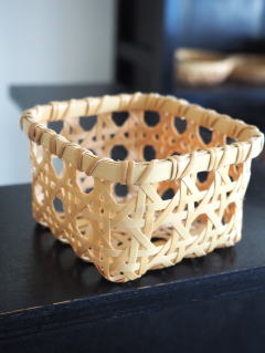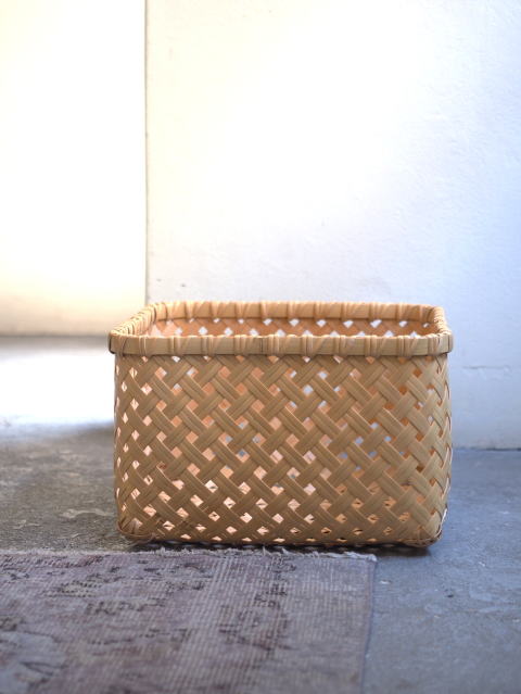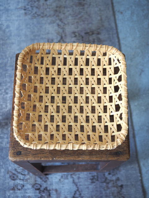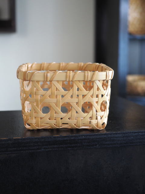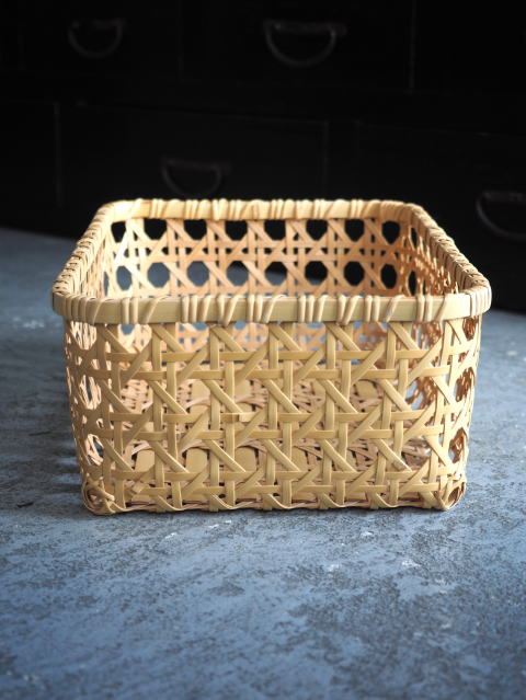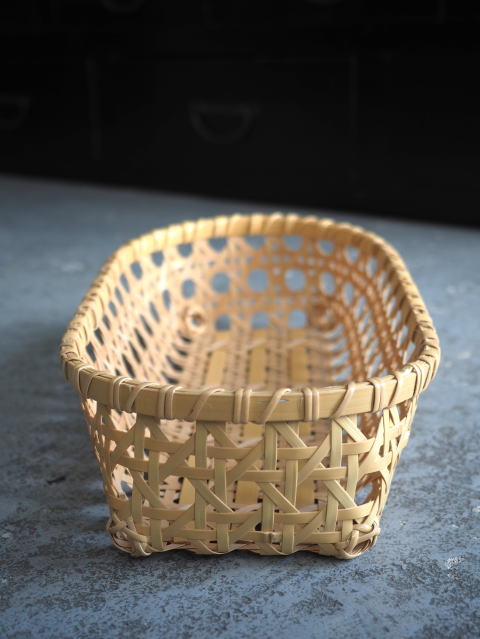 (9)整理篭 角型 2本寄四ツ目編み