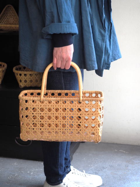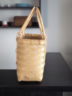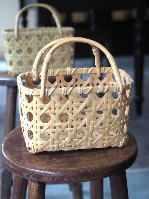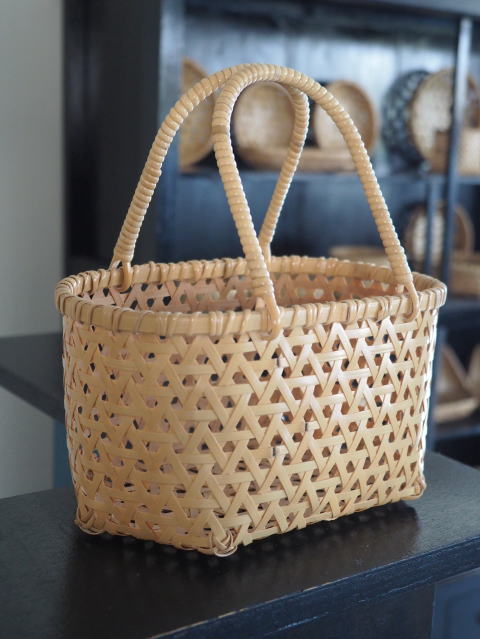 (51)手付きバスケット 長角型 八ツ目編み 2本手