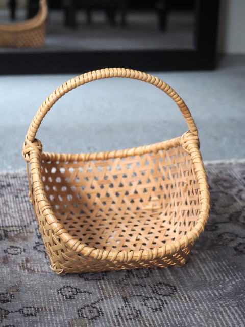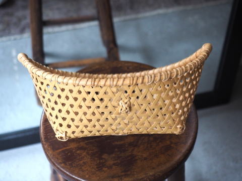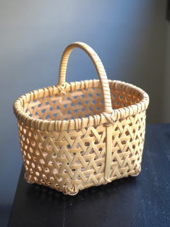(55)手付きバスケット 舟型 亀甲編み 1本手