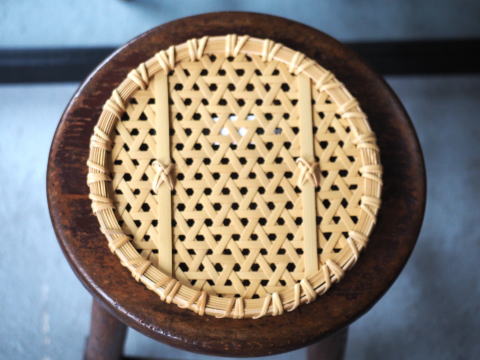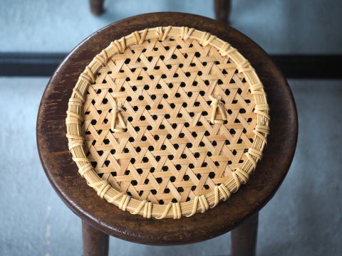 (82)スリッパ篭 丸型 2本寄せ四ツ目編み