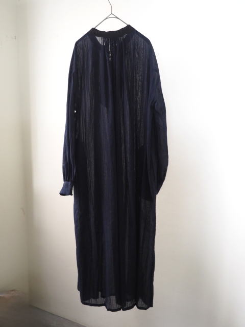 スタンドカラーのワンピースは生地違いの2色。