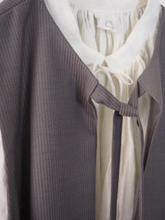 メンズ素材にあえてリボンの柔らかなシルエットで重ねています。