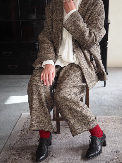 ムスブリさんのリネンコットンを使ったコートとジャケットとパンツ。