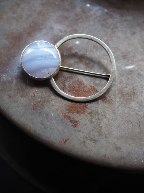 ブローチ ブルーレースアゲート/Agate、Silver950 35×50mm