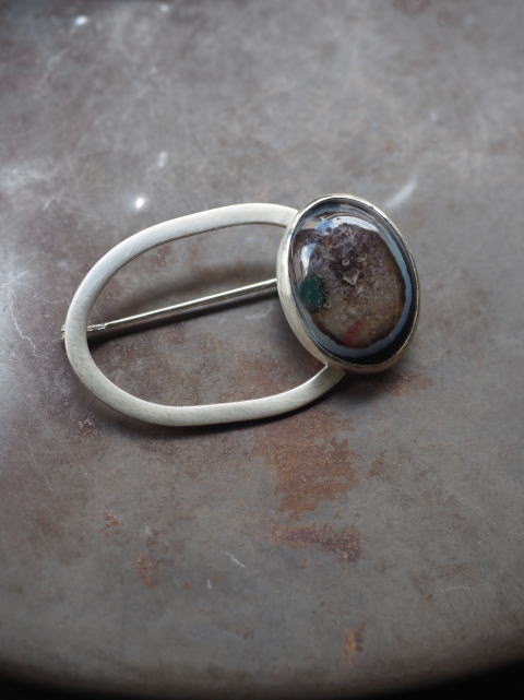 ブローチ アゲート/Agate、Silver950 25×42mm