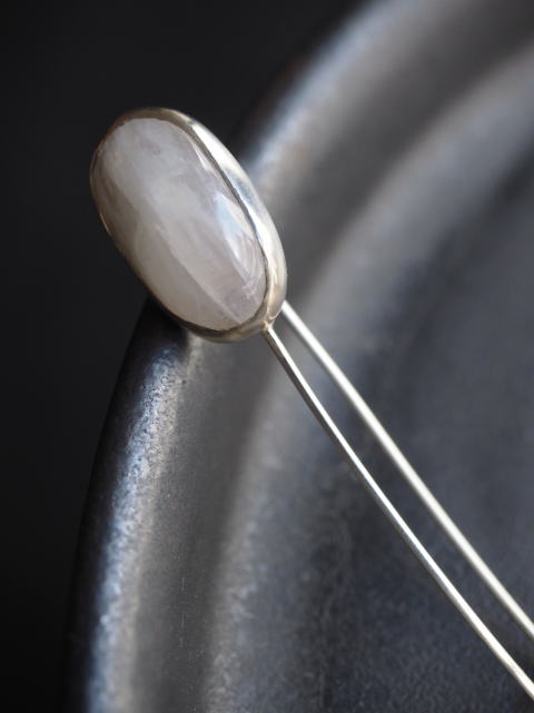 ブローチ レインボウムーンストーン/MoonStone、Silver950 ピンの長さ62mm