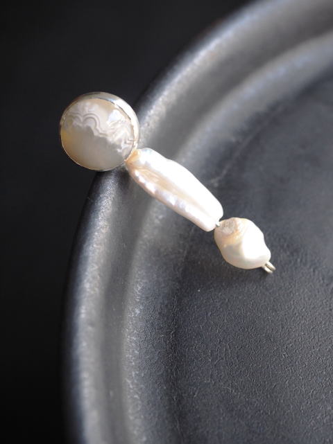 ブローチ アゲート、パール/Agate、Pearl、Silver950 ピンの長さ58mm