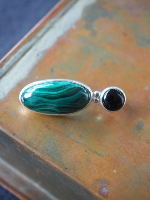 ブローチ マラカイト、オニキス/Malachite、Onyx、Silver950 15×45mm