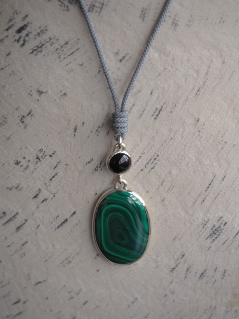 ネックレス マラカイト・オニキス/Malakite、Onyx、Silk、Silver950