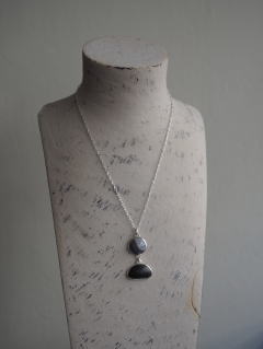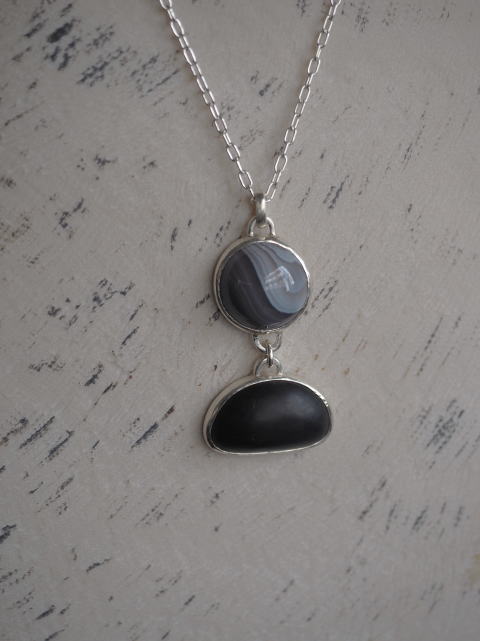 ネックレス アゲート、黒曜石/Agate、Obsidian、Silver950/チェーン長さ 520o