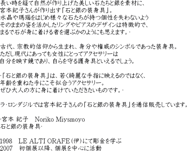 現在開催中の個展「石と銀の装身具」出品作品の通信販売を承ります。