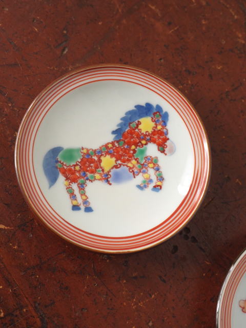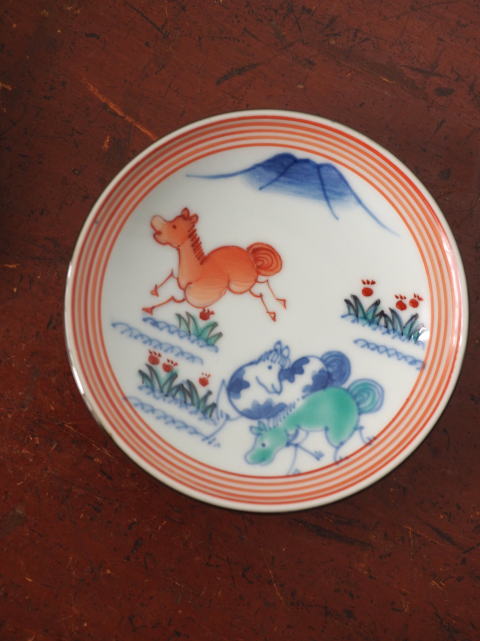 染錦干支小皿 「遊馬図」